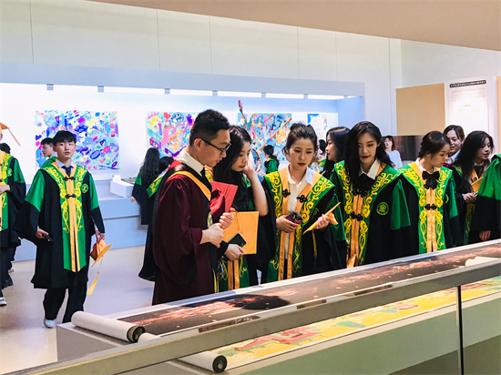 学士学位授予仪式后,各二级学院毕业生在辅导员老师的带领下,有序参观无终艺术馆。同学们在展品面前驻足停留、认真观摩,对展品所体现的专业性和艺术性赞不绝口。