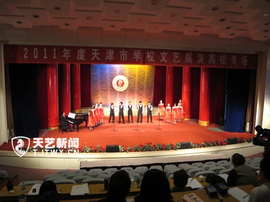 曾在天津市大学生文艺展演上获奖(男生左二)