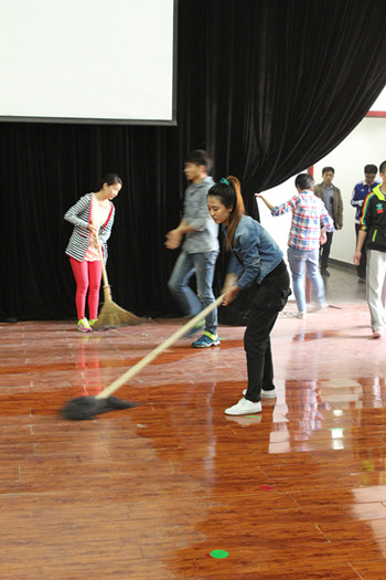 活动一开始,教育主任杨旭和姜凯老师对清扫工作做了分配,男生负责搬运储物室道具,女生负责清洁工作。随后同学们拿起自备的笤帚、簸箕,抹布,秉着不怕脏不怕累的信念,搬运道具,清扫卫生死角。清扫过程历时了一个多小时,同学们将地面、座椅和道具进行了清扫和摆放,使得黑匣子焕然一新,给学生们带来了一个安逸的观剧及排练的学习环境。